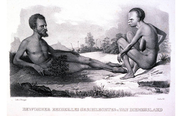 А вот как описывает туземцев Джеймс Моррисон: «…их головы были все пострижены, и мы не могли определить, курчавые они или нет, но подумали, что короткие остатки выглядели больше как шерсть, а не как волосы; их повадки были, без сомнений, миролюбивыми, а зубы черными и неровными; они были совершенно обнаженными и выглядели безобидными жалкими созданиями…».