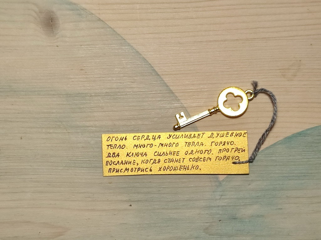 Это всё настоящие вещи, тематические подарки, но вместе с этим все они – части квеста. Мотиваторы на ключах, например, были одновременно и частью подсказок. Полюбуемся на те самые ключи с мотиваторами-подсказками?