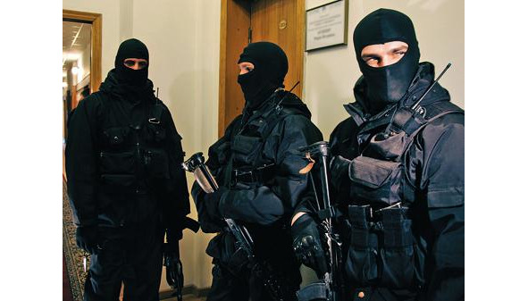 Неизвестные «оружные люди», в масках и камуфляже, ворвались следом за отпиравшим вход охранником. Не представляясь, заставили открыть кабинеты, впускали всех служащих и загоняли, после установления личности, в кабинет СБ.