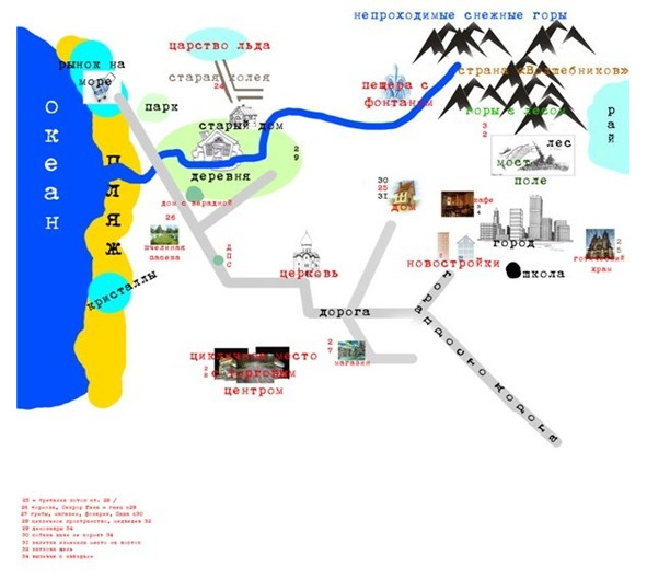 Если описывать на что похожа карта снов, то наиболее близкой аналогией будет, например, стилизованная карта достопримечательностей какого-нибудь города, где каждый объект представлен в виде упрощённой картинки.