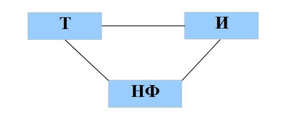 Две вершины этого треугольника – Телевидение (Т) и Интернет (И) (напомним, взятые не сами по себе, а как особые пространства/формы песенной жизни). Третью вершину условно обозначим – Натуральная Форма (НФ). Выбранный нами подход заставляет взглянуть на эту самую НФ также под особым углом зрения, а именно, чтобы попытаться ответить на вопрос, нет ли в ней самой предпосылок к тому, что происходит с песней на телевидении, с одной стороны, и в интернете, с другой.
