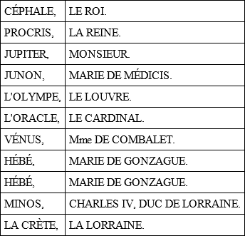 «Si Jupiter est chassé de l'Olympe, il peut se réfugier en Crète, Minos lui offrira l'hospitalité avec grand plaisir. Mais la santé de Céphale ne peut durer; pourquoi, en cas de mort, ne ferait-on pas épouser Procris à Jupiter? Le bruit court que l'Oracle veut se débarrasser de Procris pour faire épouser Vénus à Céphale. En attendant, que Jupiter continue de faire la cour à Hébé, et à feindre à propos de cette passion la plus grande mésintelligence avec Junon. Il est important que tout fin qu'il est, ou plutôt qu'il se croit, l'Oracle se trompe en croyant Jupiter amoureux d'Hébé.