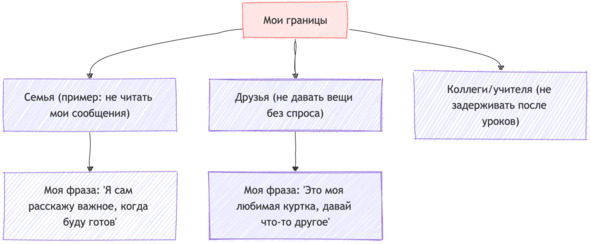 Иногда границы бывают тонкими и не всегда очевидными. Например, тебе может быть неприятно, когда кто-то читает твои сообщения без спроса или заставляет тебя делать то, что тебе не хочется. Или когда друзья постоянно требуют твоего времени, а у тебя просто нет сил или желания. Всё это – моменты, когда важно обозначить границы.