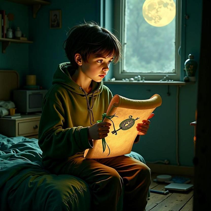 На полу, у его кровати, лежал свиток. Не конверт. Не письмо. И именно свиток. Связанный зеленой лентой, как молодая ветвь. На нем – печать в виде ключа с рогами, словно нарисованная дрожащим от ветра пером.