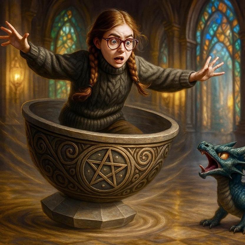 Мимо пролетавший дракоша, обернулся и издал строгое шипение, но дуббон лишь веселее закружился. Эля, размахивая руками, пыталась остановить вращение, что выглядело одновременно жалко и комично.