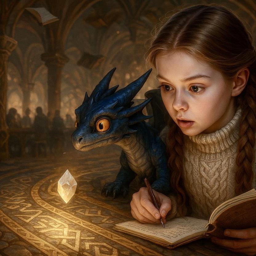Бесконечные стеллажи из светлого дерева уходили вверх и вглубь, теряясь в дымке. Но книги не стояли на полках. Они парили в воздухе, медленно вращаясь или перелетая с места на место, словно стаи диковинных птиц. Одни светились мягким светом, другие были обернуты в старую кожу или бересту, третьи шелестели страницами сами по себе. По воздуху скользили студенты, ловко подхватывая нужные фолианты или следуя за книгами, которые вели их куда-то. Повсюду витали дракоши-библиотекари, похожие на Паву, но разных оттенков, аккуратно расставляющие «пернатых» по местам или переносящие стопки.