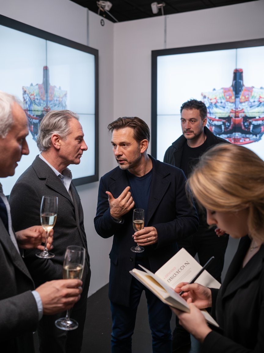 Я ловил каждый комментарий, каждую реакцию, мысленно составляя карту успеха вечера. Большинство гостей были впечатлены, хотя некоторые сохраняли скептицизм. Особенно придирчиво изучала работы Карина Штерн, методично переходя от экрана к экрану, делая заметки в небольшом блокноте.