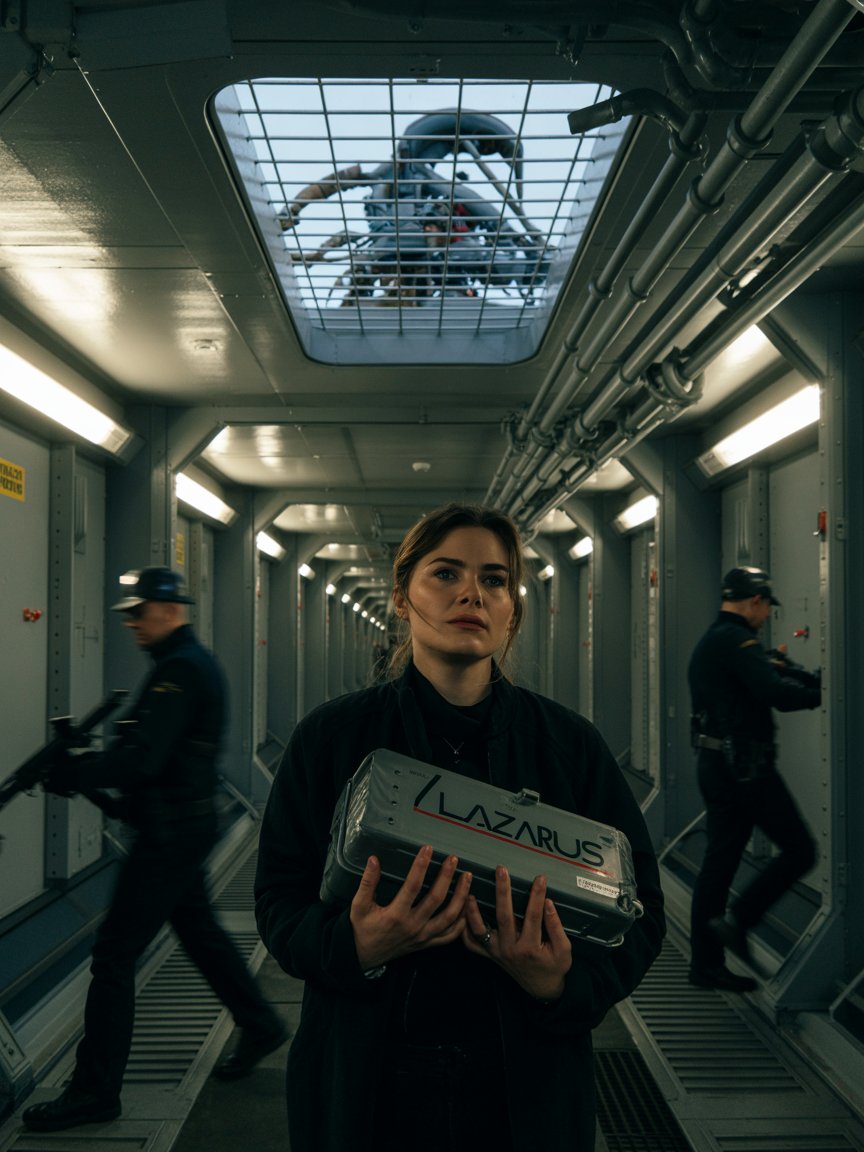 Когда погрузочные дроны переместили контейнер в один из складских отсеков, она осторожно выбралась наружу, стараясь не попадать в поле зрения камер безопасности. Контейнер «Лазарь» был надежно закреплен на специальном креплении внутри ее куртки – неудобно, но незаметно при поверхностном осмотре.