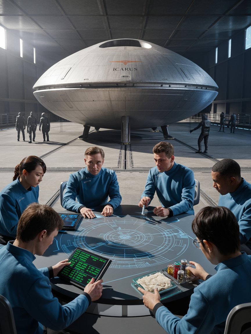 За неделю до старта Елена Соколова собрала всю команду для итогового брифинга. К этому моменту на борт "Икара" уже были погружены все необходимые запасы и оборудование, завершены последние технические проверки, и корабль был готов к отправлению.