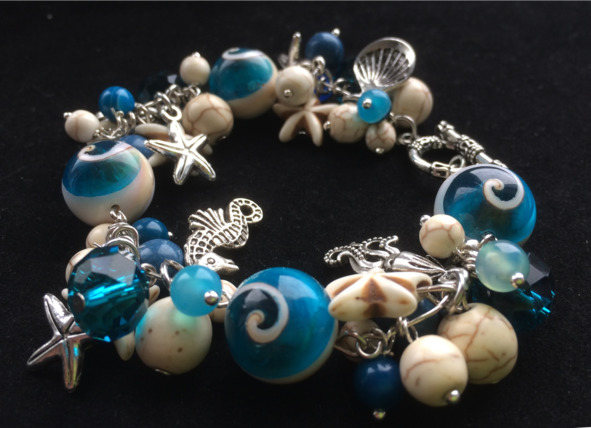 Когда-то, приступая к созданию украшений, мы с дочерью Анной действовали так, как действует типичный дилетант (см. выше). А именно: выгребли содержимое своих шкатулок и собирали первые браслеты из того, что нашлось. А нашлись деревянные четки с Алтая и керамические из Тайланда, ожерелье из натуральных камней, сто лет назад вышедшее из моды, какие-то рассыпанные бусинки. К тому же я словно готовилась к этому хобби: покупала при случае (конечно же, по розничной цене) подвески, которые так и лежали с прозрачных пакетиках, ожидая своего часа. Плюс мне дарили иногда украшения, которые я ни разу не надевала (например, серьги с серебряными ведьмами), потому что у меня не проколоты уши. Из ведьм вышли подвески на браслеты, которые мы назвали «Настоящая женщина» и которые до сих пор остаются бестселлером.
