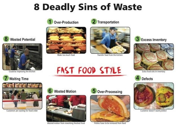 С тех пор я стал одержим идеей борьбы с ненужными затратами в своей компании FastCap. И хотя я сам уже 10 лет работаю по системе Лин, а множество людей путешествуют по всему миру, изучая бережливые методики, всё равно я считаю, что 90% того, что все мы делаем, – это бессмысленные траты. Ниже я привожу восемь примеров, где мы несём больше всего потерь. Вообще число восемь роковое.