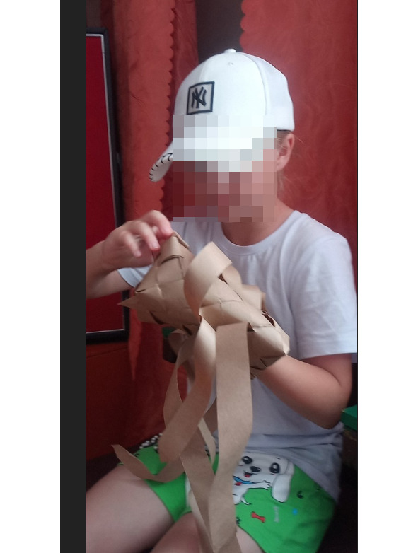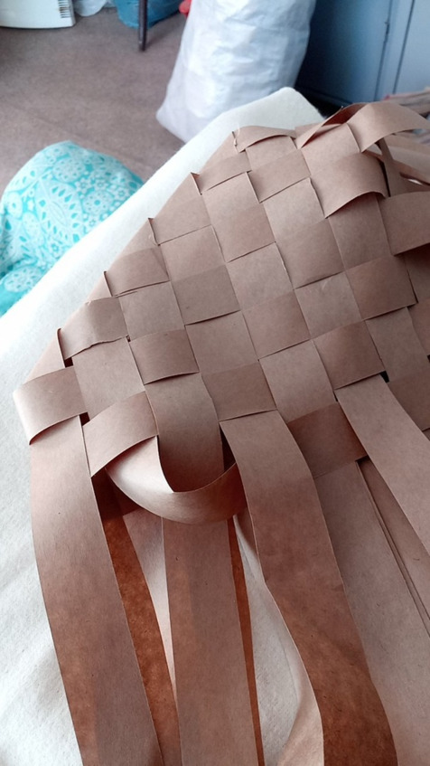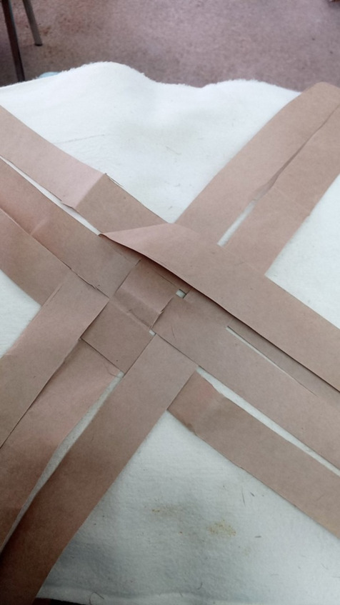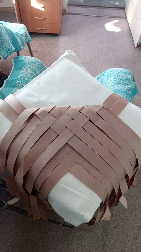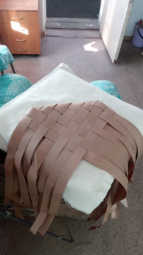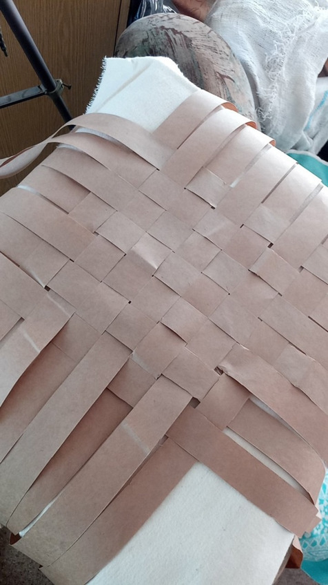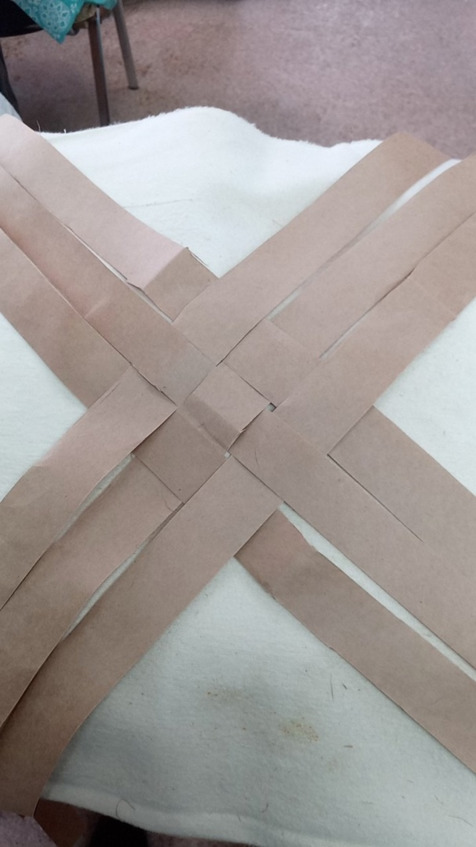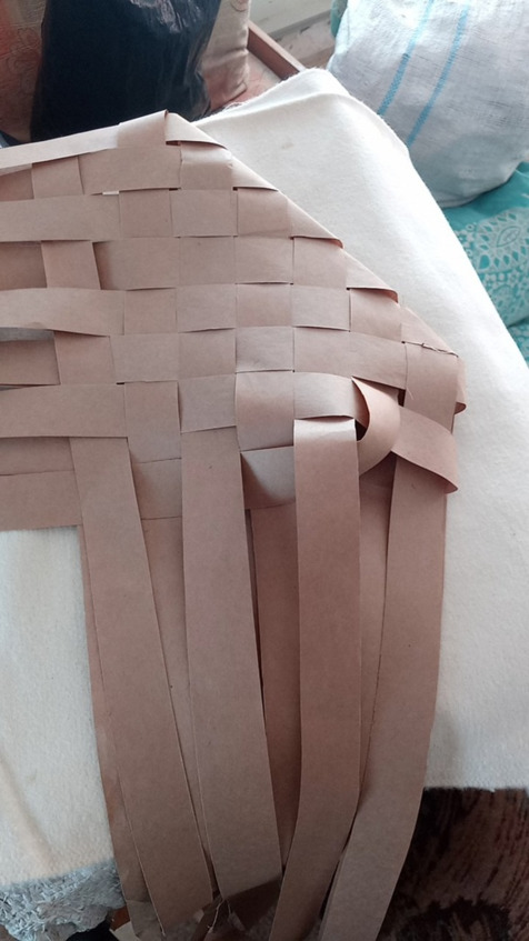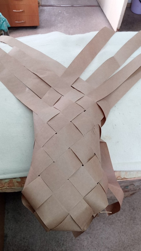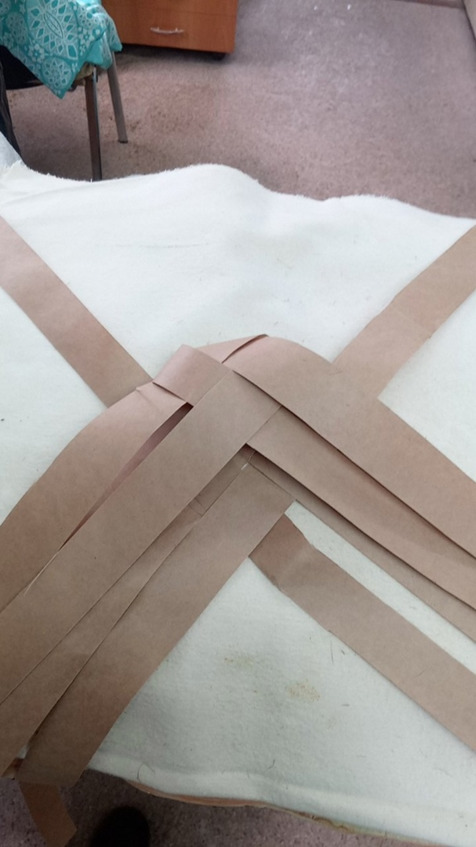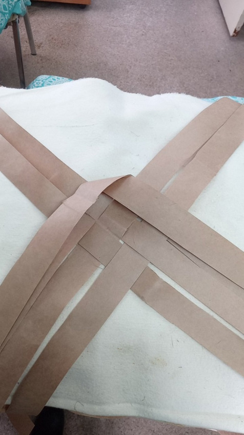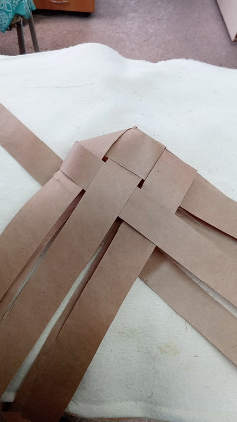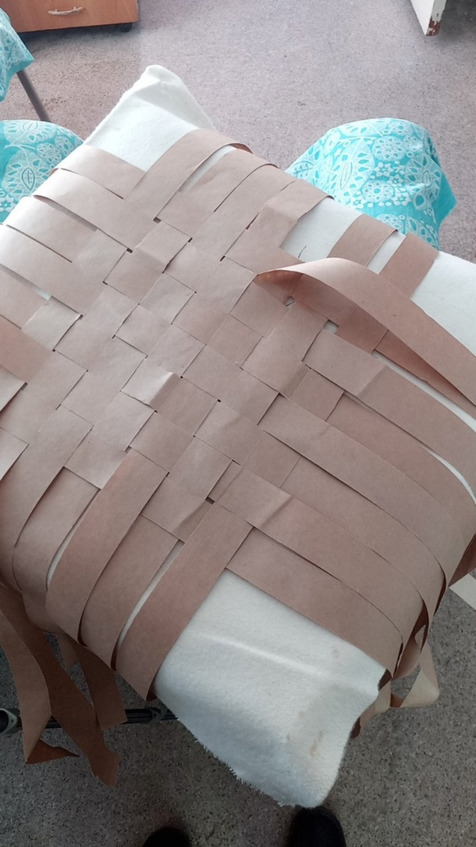 Начинаем заплетать с коврика количество лычек может быть различное и ширина лычек может быть различная это будет влиять на размер глубину ширину и высоту нашего Пестеря раскладываем коврик на коленках так будет удобнее постелить полотенце или на полу но тогда коленки будут болеть аккуратно раскладываем коврик семь на семь мы выбрали Такой размер самый оптимальный для нас чтобы входили все нам нужные вещи лычки у нас бумажные Они самые доступные и практичные в работе а просто Эврика!
