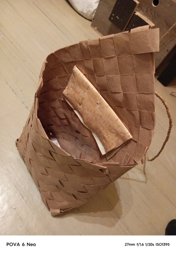 Представляем вашему вниманию уникальный старинный пёстрый портфель, выполненный из бумажных ленточек. Он сочетает в себе функциональность и эстетичность, являясь современной интерпретацией берестяного пёстра, который использовался нашими предками для хранения ценных предметов и документов.