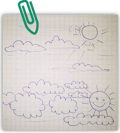 Вынести резюме, понять, что принес предыдущий опыт, событие, о котором человек думал во время рисования – вот подсознательные желания рисующего облако человека. Жизнерадостные рисунки типа солнышка с улыбкой, похожего на смайлик, сообщают: Я – мечтатель, у меня богатая фантазия и воображение.