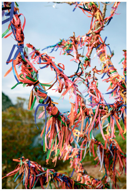 Буддисты привязывают к ветвям деревьев ленточки в качестве подношения духам.
