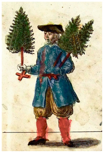 Продавец рождественских елок. Рисунок Давида Херлибергера, Германия, 1748 г.
