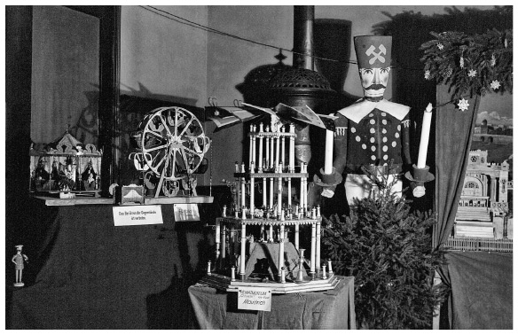 Рождественская пирамида на выставке традиционных праздничных украшений. Германия, фотография 1930-х гг.