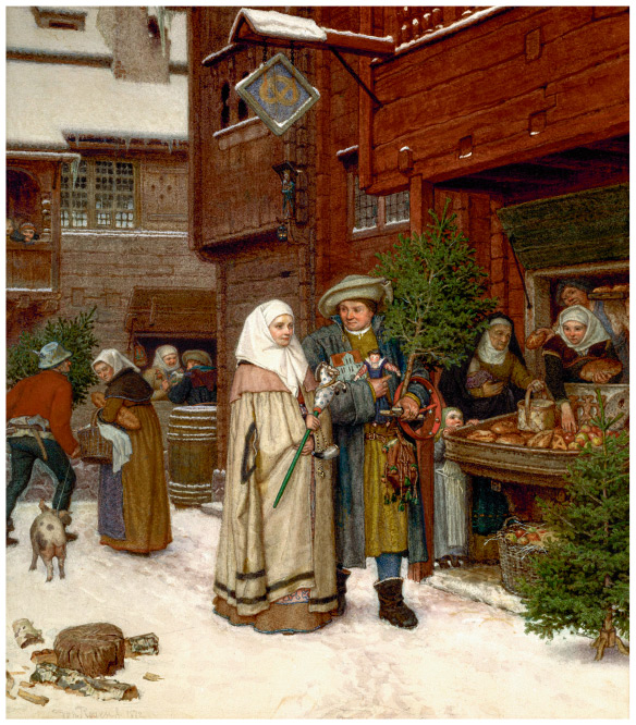 Рождественская ярмарка в Швеции. Картина Георга фон Розена, 1872 г.