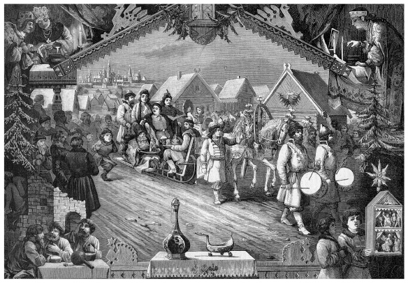 «Святки и славленье Христа при Петре Великом». Рисунок П. С. Загорского из журнала «Всемирная иллюстрация», 1882 г.