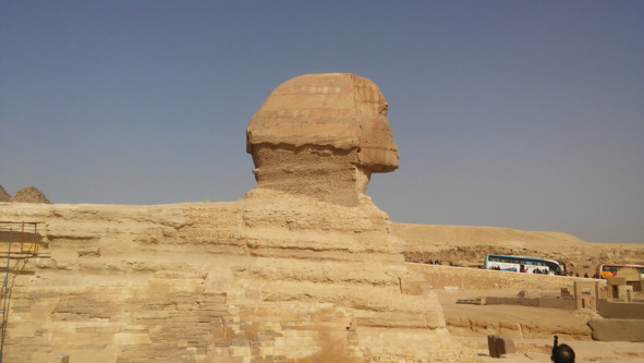 Ранним утром автобус подъехал к нашему отелю, и мы отправились в путь. Экскурсовод рассказывал о пирамидах, о сфинксе, который древнее пирамид. Сфинкс был засыпан песком. Фараону Тутмосу IV приснился сон о том, что Сфинкс попал в плен в пески. Фараон приказал расчистить Сфинкса из песков. Сейчас под каменным исполином открыт для посещения храм. Сфинкс и храм под ним связаны с пирамидой Хеопса в единый комплекс.