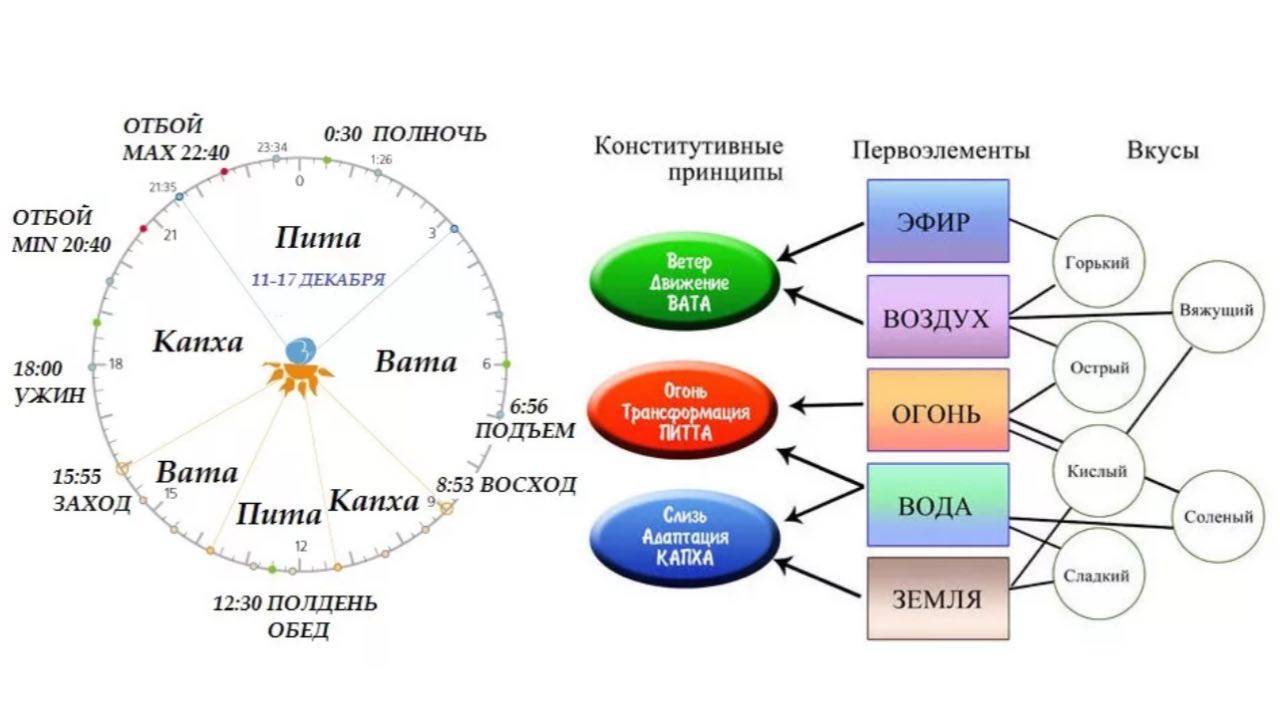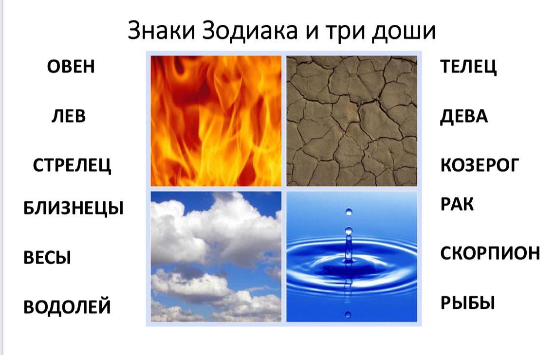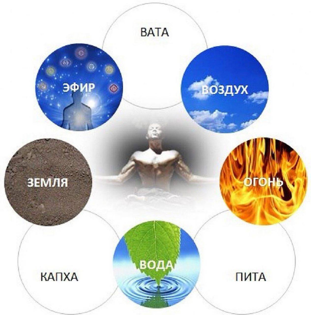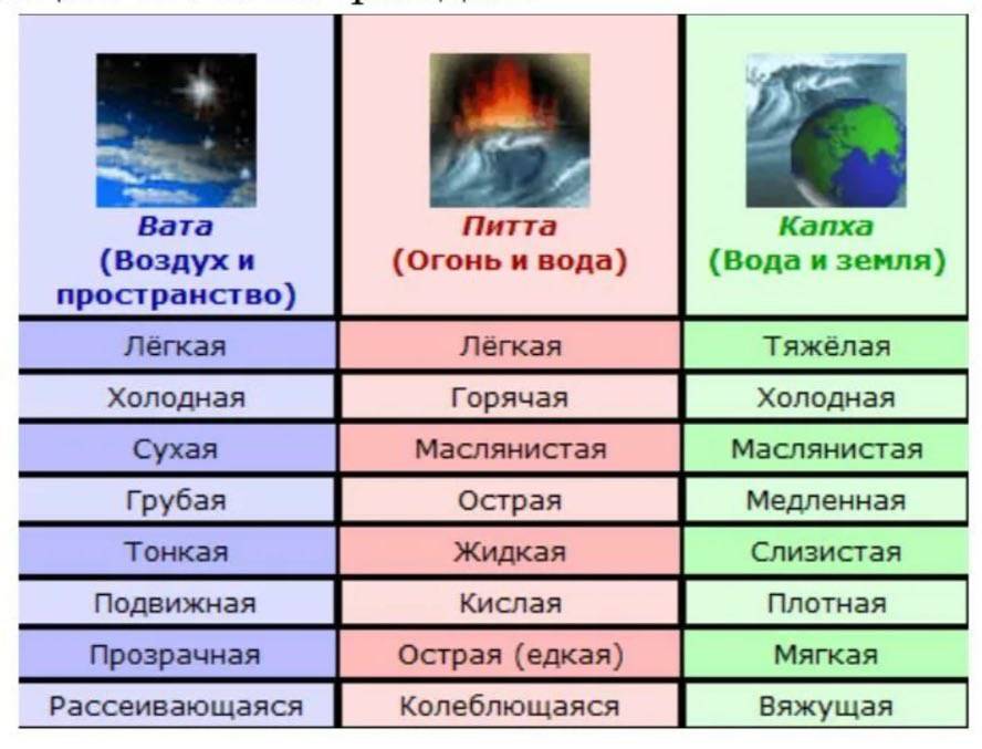 Доши происходят из пяти первоэлементов и связанные с ними свойств.