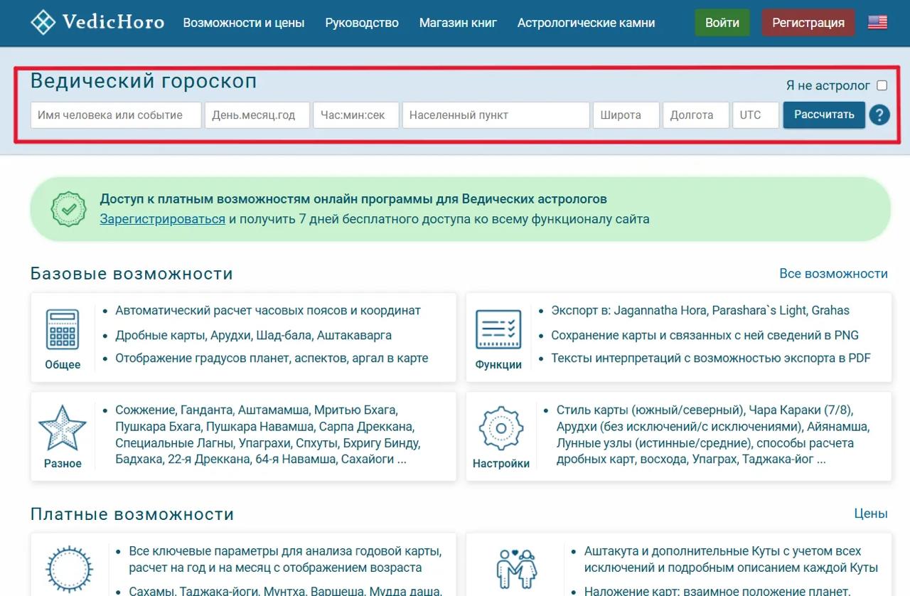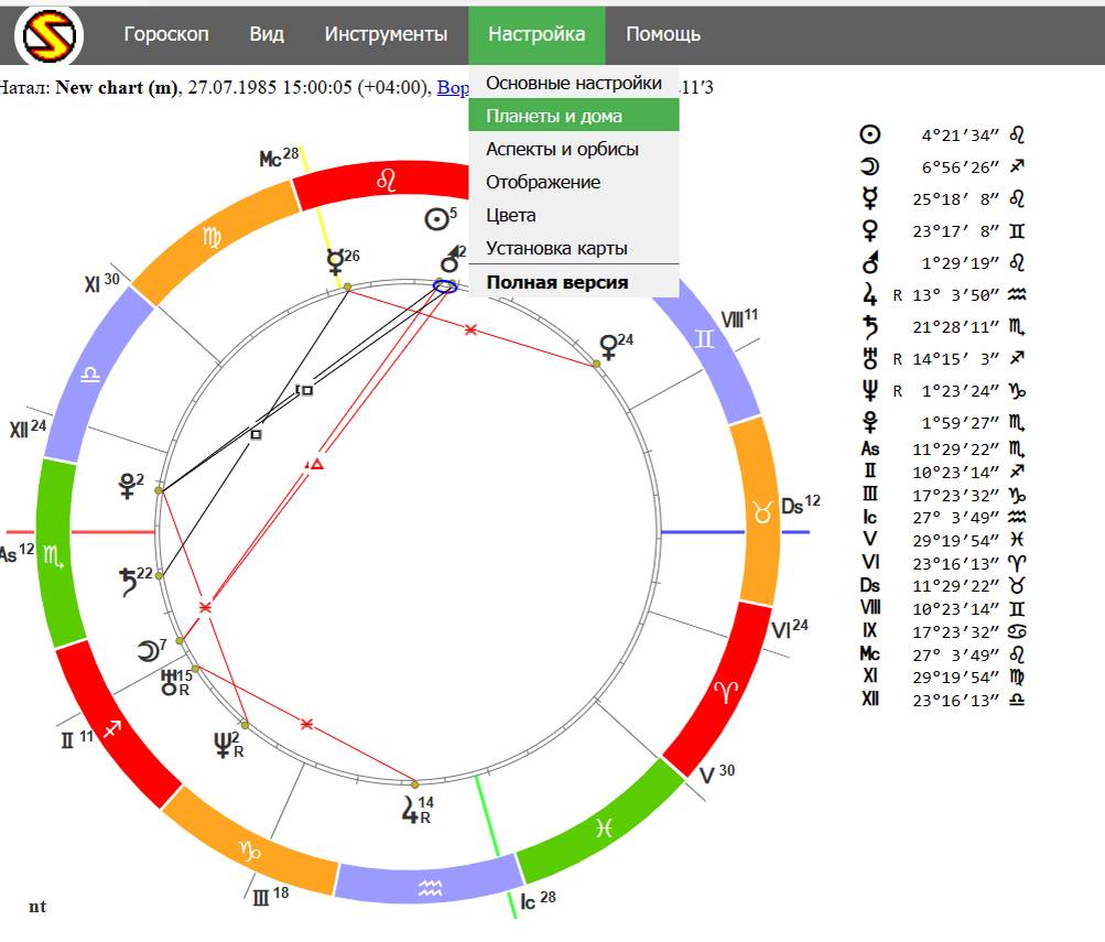Инструкция, как построить ведический гороскоп на дату своего рождения в онлайн программе «Ведик Хоро»: