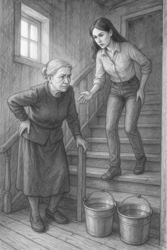 Вышла на лестницу – и увидела внизу соседку, ту самую, которую Анна называла «тётя Шура». Старуха, видно, ходила к колонке за водой: в каждой руке у неё было по ведру, полному до краёв. То ли она стирку затевала, то ли генеральную уборку, бог весть, но воды ей понадобилось много, а ходить два раза туда-сюда не хотелось.