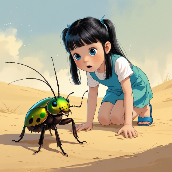 – Вот если бы ты сломала время не назад, а вперёд, то уже знала бы, что у жуков шкурка – хитиновая! И даже не спрашивала бы, кто я. Ты бы знала, что я – прибрежный жук-скакун. По-латыни – Cicindela maritima. Из семьи жужелиц я.