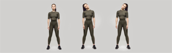 Исходное положение – стоя, руки вдоль туловища. В исходном положении вдох и на выдохе медленно наклоняем голову к правому плечу, экспозиция 2—3 сек, вернулись в исходное положение. И снова вдох и на выдохе медленно наклоняем голову к левому плечу, экспозиция 2—3 сек, вернулись в исходное положение. Плечи не поднимать. Выполнить 3—4 раза.