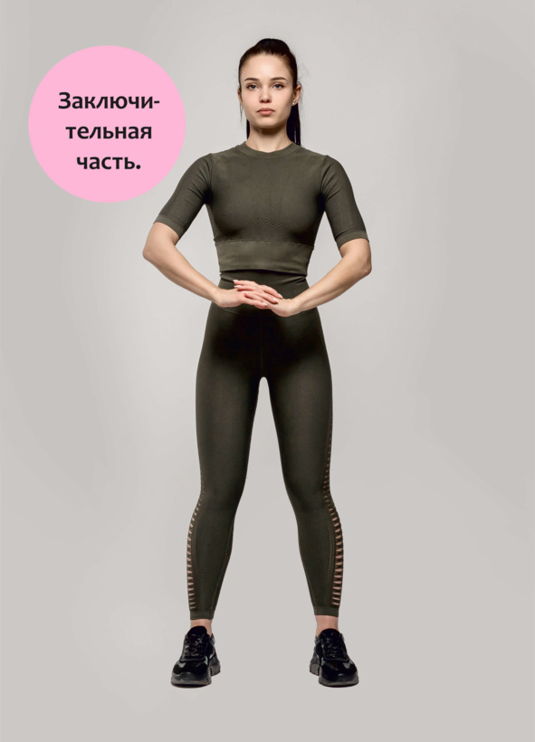 После выполнения упражнения небольшой наклон туловища вперед, руки опустили расслабили, голову наклонили, шею расслабили, сняли напряжение.
