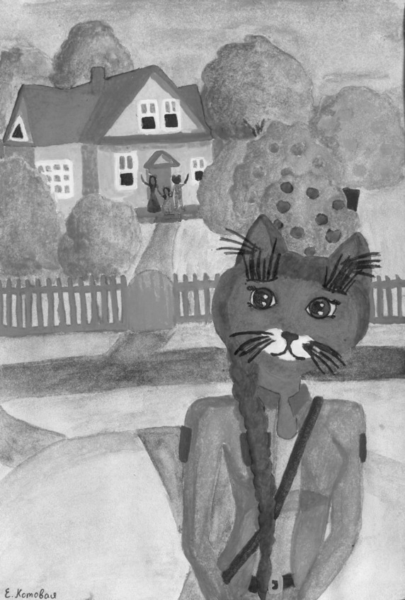 Выйдя во двор, кошечки увидели далеко в саду чёрную фигуру отца в зелёной куртке и старых синих брюках. Он собирал яблоки, ещё покрытые росой и оттого сверкающие на солнце. Именно из таких чуть влажных плодов мама всегда варила самое вкусное варенье. Папа весело помахал дочерям лапой, и школьницы отправились дальше.