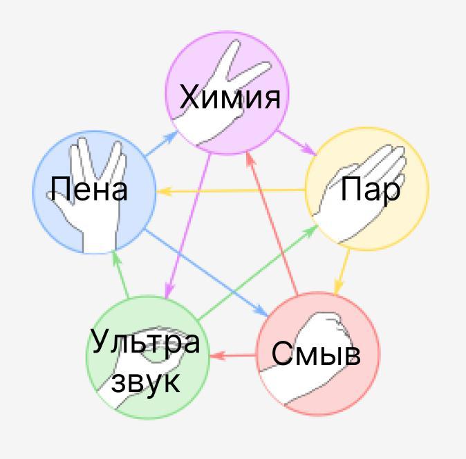 б) Несовместимые комбинации:Ультразвук + Смыв = Коллапс (F-ранг)