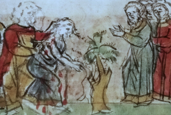 Крестное знамение спасает от беса. Миниатюра из Радзивиловской летописи, XV век
