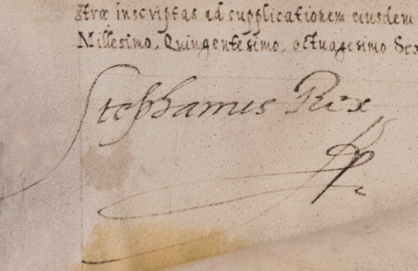 Оригинальная подпись Батория на документе: Stephanus Rex (Стефан Король). Гродно, 1586 год. Библиотека Чарторыйских.