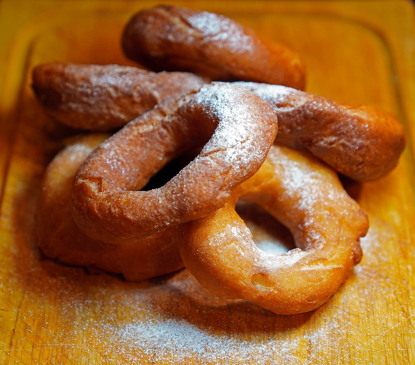 Но. В моем понимании, то, что мы сделали, – это пончики. А пышка для меня – это примерно так же все по тесту, но по форме это не тор, а булочка такая, что-то более-менее шарообразное. У меня на родине в Казахстане такое называется Баурсак. Но легендарная пышечная на Большой Конюшенной – она же пышечная, а не пончиковая. А продают там торообразные изделия, которые мы и сделали. И получилось не хуже. Ну, почти. Зато час в очереди не стоять.