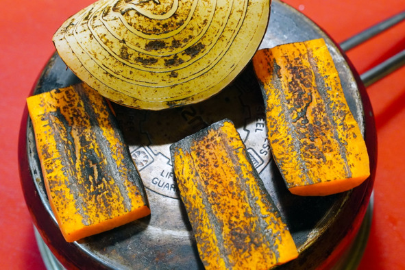 Как? На газовой плите можно положить прямо на газ. На прочих плитах – на сухую сковороду. Или обжечь газовой горелкой, чтобы сковороду не пачкать, о ней ниже.