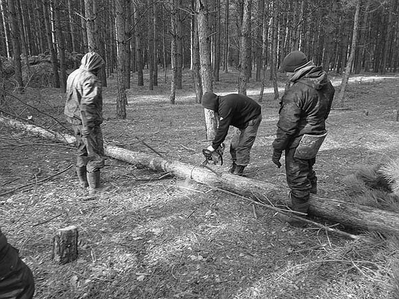Готовим брёвна для блиндажа