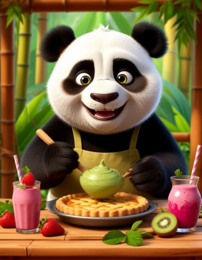 Сегодняшний день был особенным. Пандыч и Пандюша решили порадовать себя и своих друзей – стайку шустрых зайчиков и мудрого старого филина – настоящим бамбуковым пирогом и освежающим смузи. Это было их фирменное угощение, которое всегда вызывало бурю восторга.