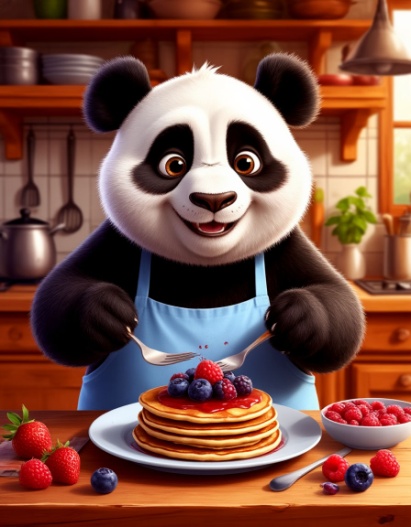 Пандыч, который был немного старше и всегда любил экспериментировать на кухне, предложил сделать блинчики с ягодами. Пандюша, с радостью согласившись, побежал собирать свежие ягоды из леса. Он знал, что в кустах малины и черники сейчас как раз созрели самые сладкие плоды.