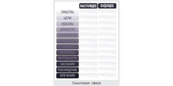 Если вы достигли уровня реальности, когда готовы рассматривать себя в контексте отношений с окружающими, в контексте реализации способностей, пользы, которую вы приносите другим, можно помимо АТРИБУТОВ «Я» ввести других людей, области реальности. Попробуйте с помощью вопросов расширить горизонты сознания и перейти на новый уровень реальности (с индивидуального на СЕМЕЙНЫЙ, ОБЩЕСТВЕННЫЙ, ОБЩЕЧЕЛОВЕЧЕСКИЙ, ВСЕЛЕНСКИЙ).