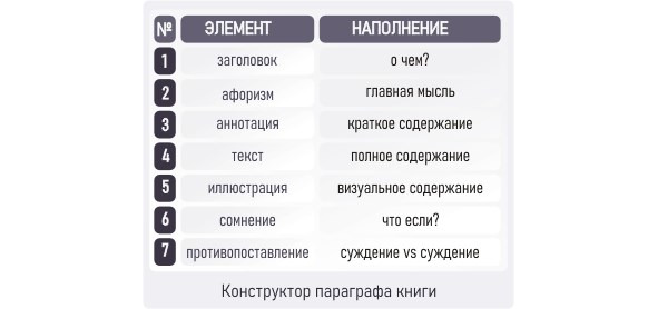 Конструктор содержания книги выглядел как пункты содержания: «Кто я?», «Где я?» и так далее.