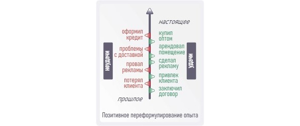 Разделите опыт на две колонки: успешный и неудачный. Разместите неудачи в прошлом, переместите успешные пункты в настоящее.
