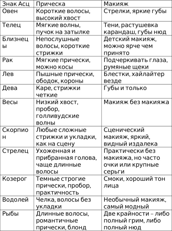 А еще для девушек я разработала таблицу – инструкцию по внешнему виду, тут ваши самые выигрышные комбинации по стилю и макияжу, пробуйте: