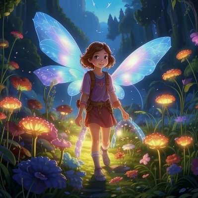 Однажды Лиза гуляла по долине и набрела на необычный сад. Там росли цветы всех цветов радуги, и каждый цветок словно светился изнутри. К Лизе подошла маленькая фея с прозрачными крылышками и сказала: