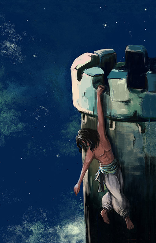 Верхнюю часть башенной стены освещал теперь уже лунный свет, делая заметными все ее неровности. Хоть и сущую малость, но это облегчало его задачу.