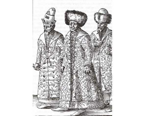 Московские чиновники. Старинная гравюра 17 века. Неизвестный художник.