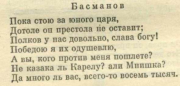 Александр Сергеевич Пушкин в «Борисе Годунове» так писал о ситуации, где Годунов говорит Петру Басманову: