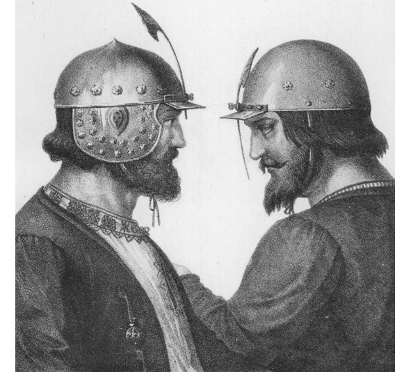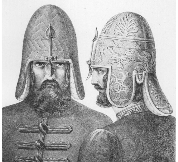 Русский воин в шлеме. Художник Н. Черняев из труда А.В.Висковатова «Историческое описание одежды и вооружения российских войск».