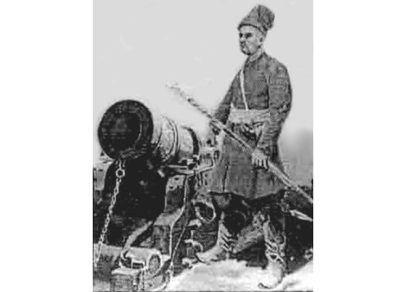Бомбардир. Старинная гравюра. Неизвестный художник.