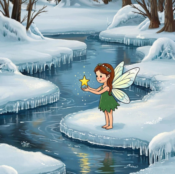 Льдина несла её по реке, как крошечный кораблик, а вода была холодной и безжалостной. Звёздочка из последних сил держалась за льдину, её свет мерцал, как последний огонёк в ночи. Вдруг из тумана над водой протянулись руки – нежные, словно сотканные из солнечных лучей. Это была Фея Весна. Её платье шелестело, как первые листья, а глаза светились теплом.